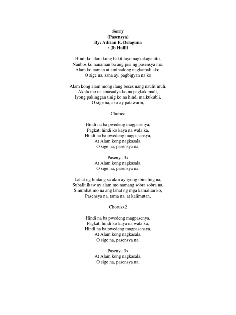 Pero ngayon alam ko na Tama ka. Nasabi ko sa sarili ko Anong nangyayari. Naglaho na ba ang pag-ibig mo Sana maulit muli Sana bigyan ng pansin ang himig ko Kahapon bukas ngayon Tanging wala nang ibang mahal Chorus.
